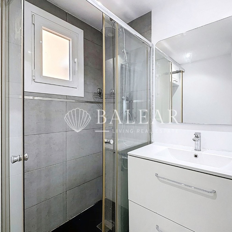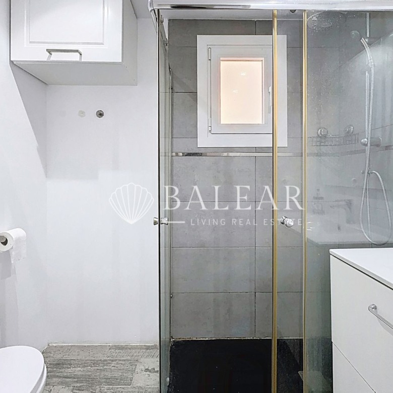 El baño, reformado en 2022, mantiene esa sensación de frescura con una ducha espaciosa y un diseño limpio que aporta luminosidad y comodidad al ambiente.