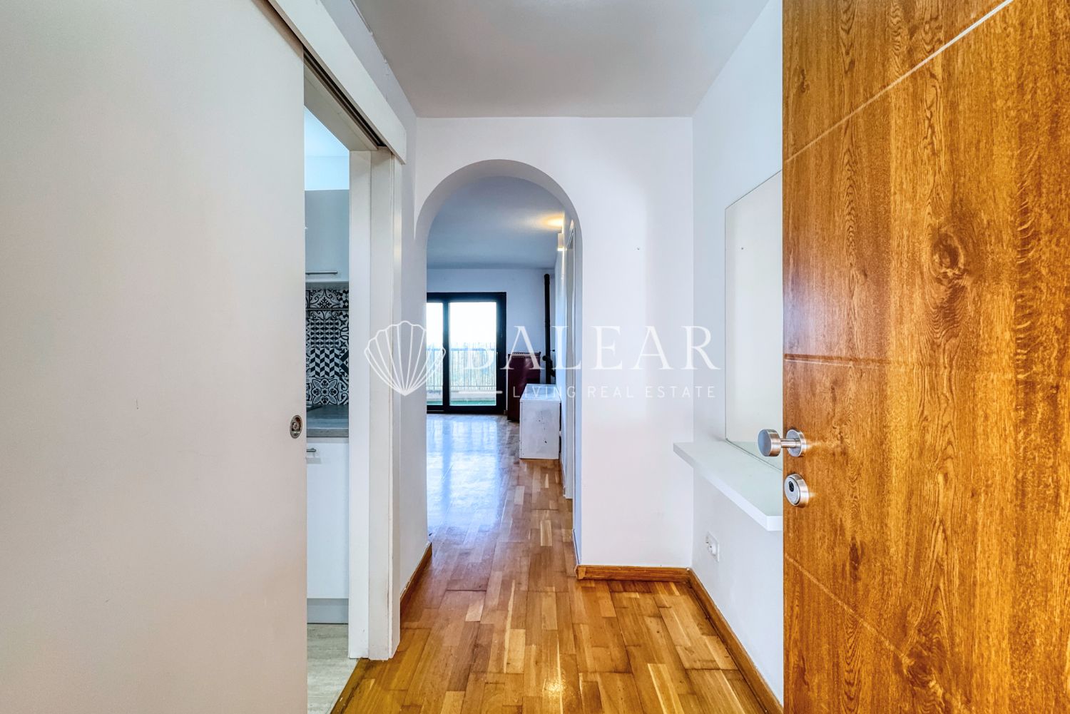 Desde el momento en que abres la puerta blindada, el recibidor te da la bienvenida con la calidez de su suelo de madera, presente en toda la vivienda y capaz de transformar cualquier llegada en una sensación inmediata de confort.
